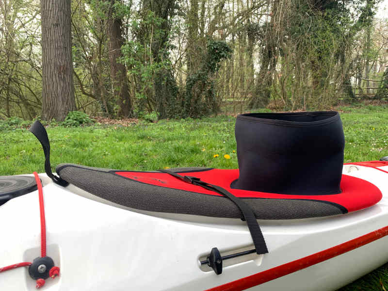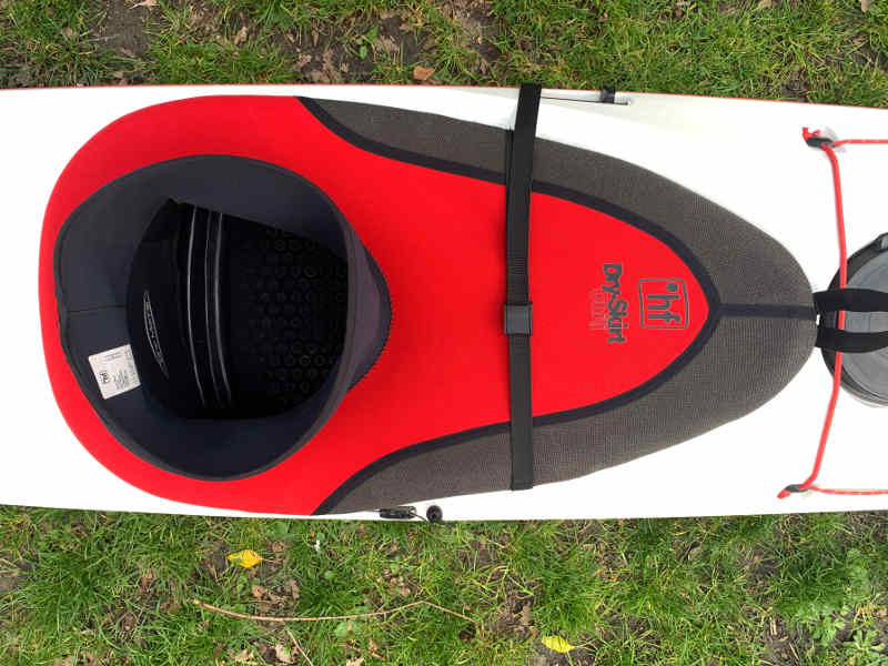 Eigentlich ist die hf Dry-Skirt eine Wildwasser Spritzdecke. Der starke Gummi ist für runde Süllränder von PE Kajaks gemacht. Bei kantigen Süllrändern von GFK Seekajaks hält dieser extrem fest.